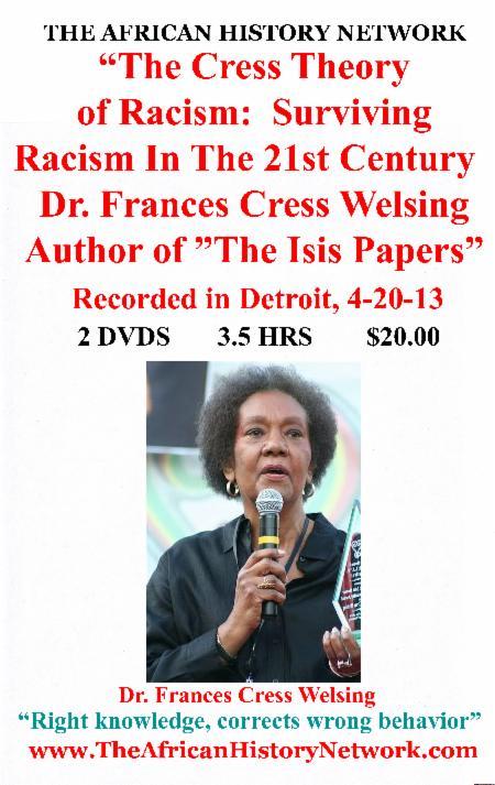 New DVD Title, "The Cress Theory Of Racism" by Dr. Frances Cress Welsing, Item # 700, 2 DVDs, $20.00